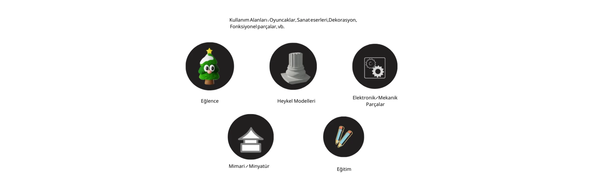 Yüksek Uyumluluk FDM 3D Yazıcıların çoğu ile uyumludur. Örneğin : Bambu Lab P1P / X1 / X1C/P1S/P1S Combo/A1/A1 Combo/A1 Mini/A1 Mini Combo, AnkerMake M5, Creality K1 / K1 Max, FLSUN V400, Prusa, UltiMaker, MK3, Ender 3, MakerBot, Flashforge, Raise3D. İyi katman yapıştırma performansı, yüksek tokluğa sahip fonksiyonel parçalar basma taleplerinizi karşılar. Makine, elektronik aletler, otomobiller, dekorasyonlar, cosplay ve diğer ürünlerde yaygın olarak kullanılır.